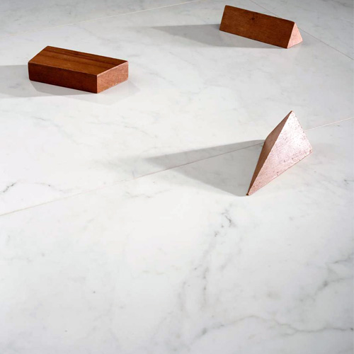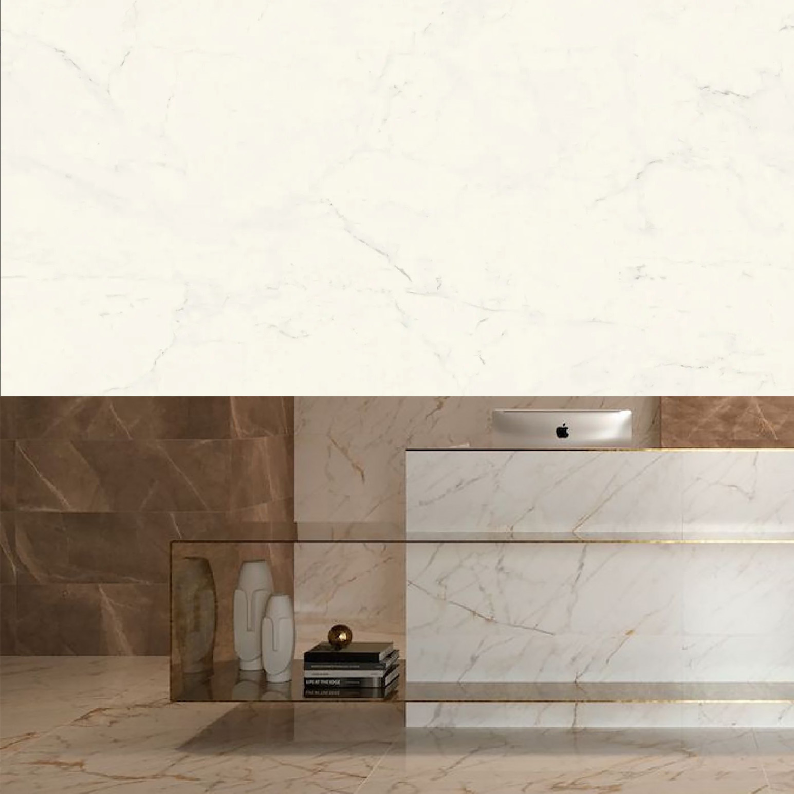 Hvid keramik med diskrete grå og lysebrune åre.