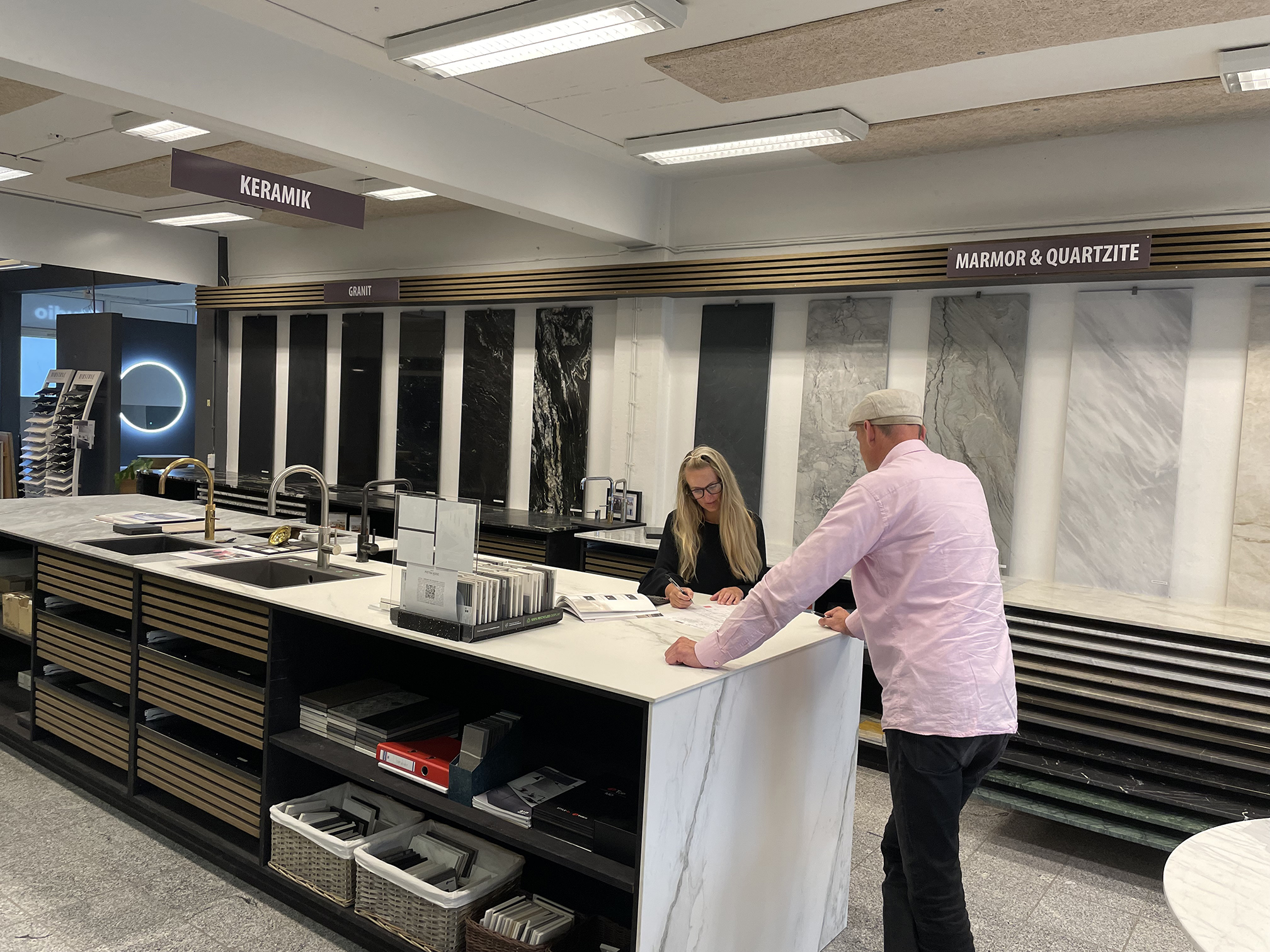 Vores venlige og kyndige medarbejdere står altid klar til at guide dig gennem vores samling og besvare dine spørgsmål. De kan hjælpe med at finde den helt rette bordplade, der ikke blot matcher din stil, men også opfylder dine praktiske behov.